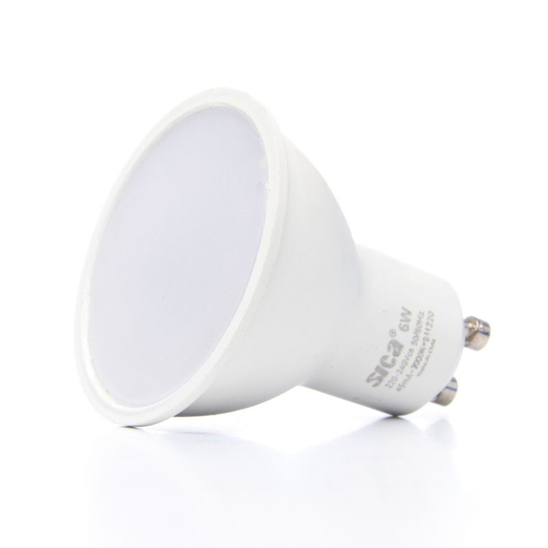 Lampara LED 6W, reemplaza dicroica 50W, Luz calida, Casquillo GU10, 220V. Amplia gama de lamparas LED para satisfacer todos las demandas de iluminacion general y decorativa. Gran eficiencia luminica, Calidad, certificacion IRAM y garantia a precios competitivos.