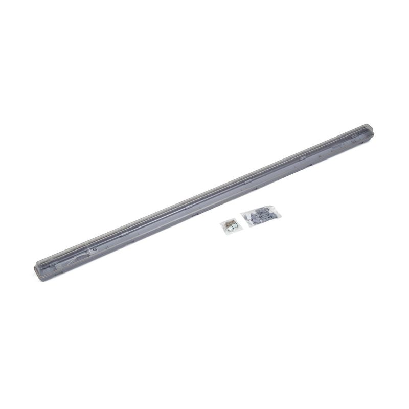 Listón IP65 para tubos LED T8 de 150 cm de largo nominal. Conexión 1 lateral. Construido en policarbonato. Incluye accesorios para montaje.