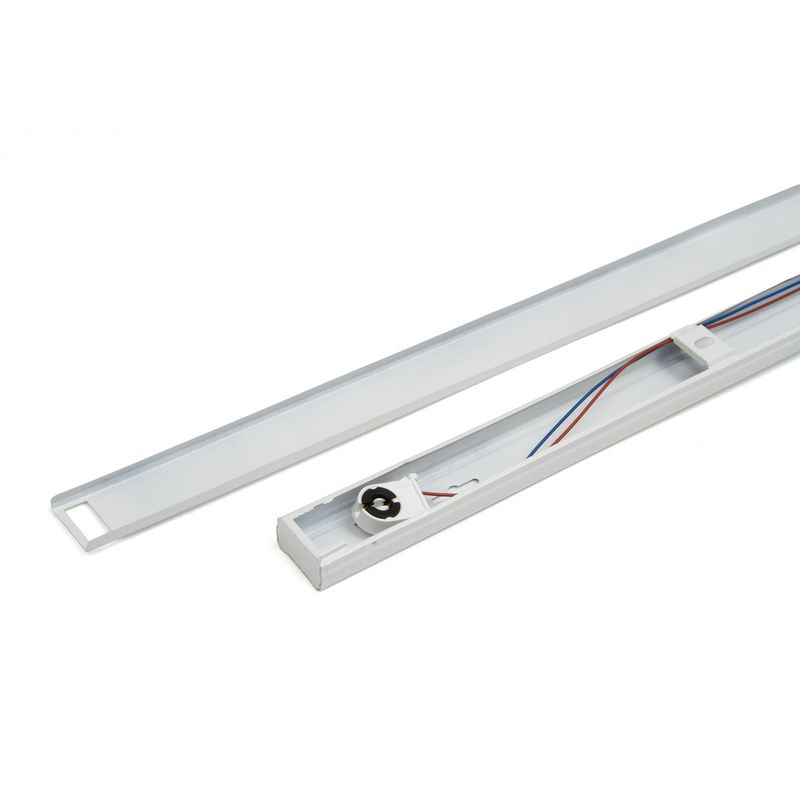 Listón metálico para tubo LED T8 de 600mm de largo. Conexión 1 lateral.