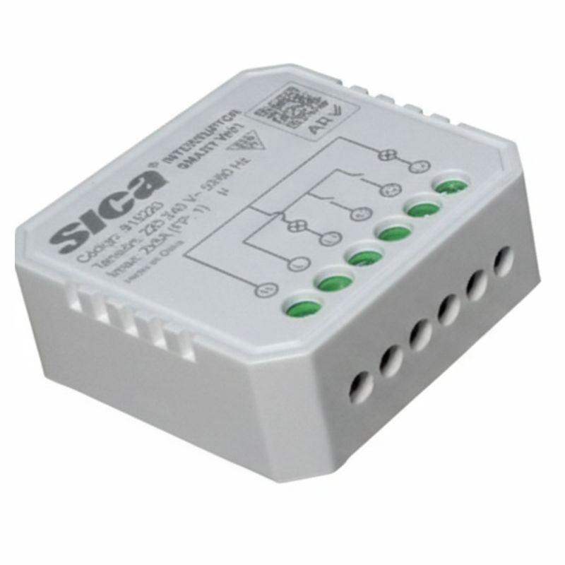 El Interruptor Smart Wi-Fi permite controlar el encendido y apagado de pequeñas cargas a través de una aplicación móvil. Puede controlar dos circuitos independientes, cada uno con una capacidad de hasta 5 A. Su diseño compacto facilita la instalación dentro de cajas existentes, integrándose fácilmente en instalaciones eléctricas tradicionales.