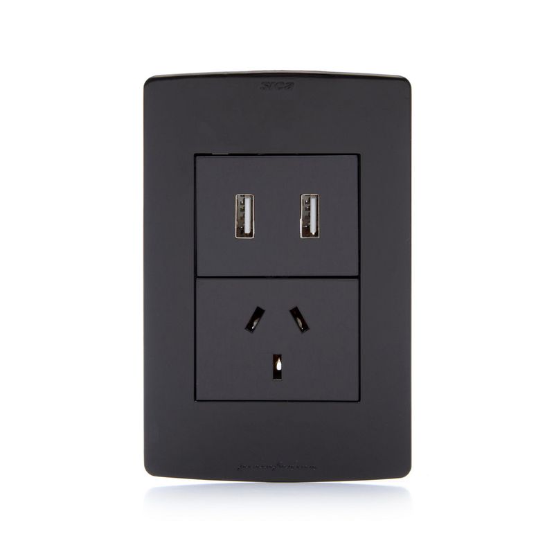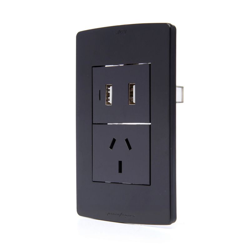 Silight Armada Toma USB+Toma 10 A color negro. Caja por 6 unidades.